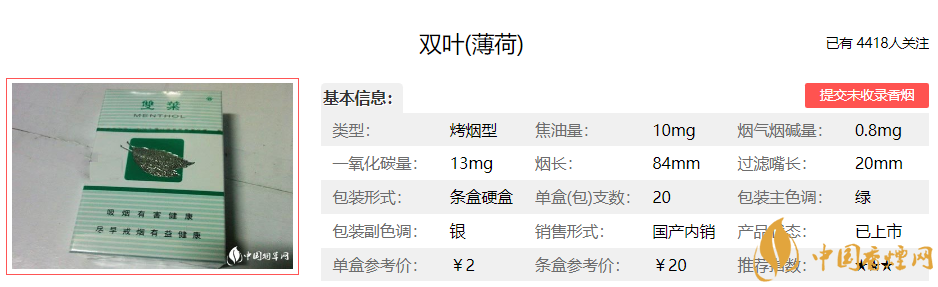 雙葉煙也是小時候抽過的比較經典的一款煙,最后才知道它是一款薄荷煙,和我們抽過的其他煙有很大的區別,抽起來涼颼颼的。煙香保持和諧,口味清新、自然,通體舒暢。產品獨特的香味感受以及平易的價格,讓眾多消費者對其情有獨鐘。
