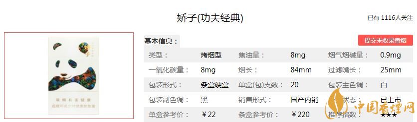 二、嬌子功夫經典香煙價格參數