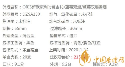 ORIS豪利時(shí)莫吉托爆珠,這款香煙的外觀是以寶藍(lán)色為主色,非常大氣簡約,這是一款非常適用于夏季品吸的香煙。