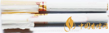 側面包裝和拉線頭差異對比:真品卷煙包裝時內襯紙明顯長于商標紙,拉線頭為規則半橢圓形、且邊緣光滑,電話號碼“8008571056”字體筆畫較細;假煙包裝時內襯紙和商標紙基本上相平,拉線頭形狀不規則,且邊緣較粗糙,電話號碼“8008571056”字體筆畫較粗,與真品特征存在明顯差異。