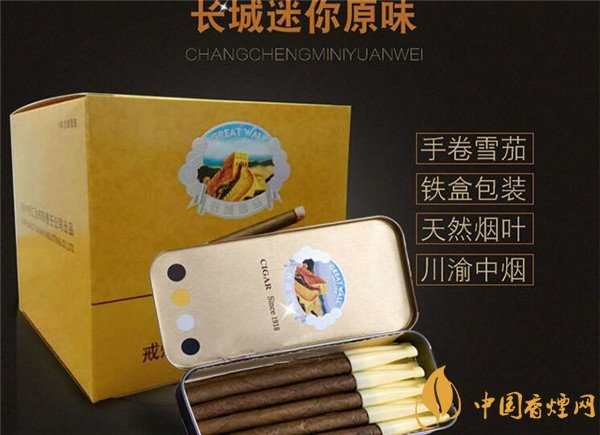 長城雪茄煙這款迷你原味裝,上市以來還是很受歡迎的,精致的黃色鐵盒裝外表,時尚也便于攜帶,拿出來顯擺顯擺還挺酷的。長城雪茄煙(迷你原味)怎么樣 ?長城迷你原味入肺嗎?現在就由香煙網小編來為大家分析一下這款長城雪茄煙怎么樣。
