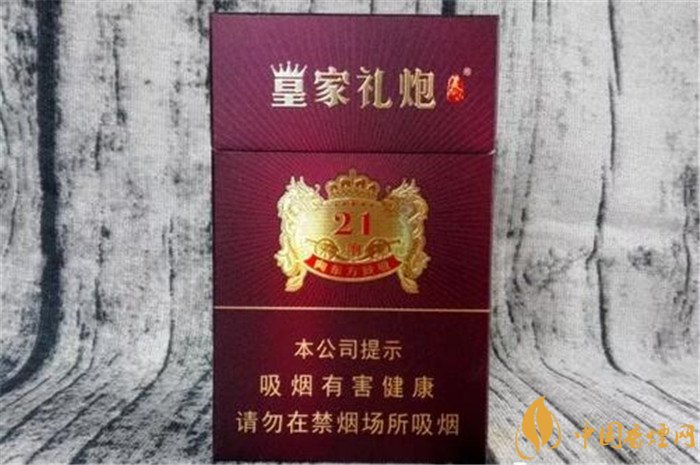 皇家禮炮21響香煙零售價多少錢一包,參考價:36元/盒皇家禮炮香煙怎么樣?這款21響禮炮的煙盒酒紅色澤包裝設計,應該是與同名的洋酒顏色相同。至于煙盒中間那個圖案,想必也是創意于洋酒。我沒有去查找皇家禮炮洋酒的圖片,至今也不知道它長的什么樣子。理化指標的數值含量,還算比較合理。煙盒側面有二維碼,翻蓋里側有驗證碼。