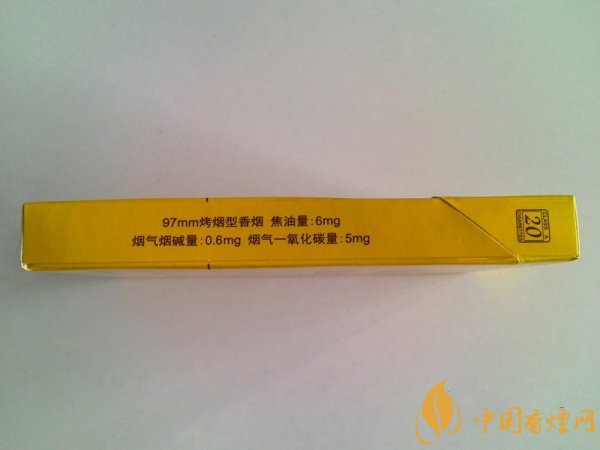 右側為詳細的商品信息,97mm烤煙型香煙,三項理化指標相對均衡:焦油量6mg 煙氣煙堿量0.6mg 煙氣一氧化碳量5mg。