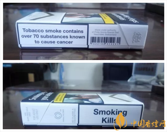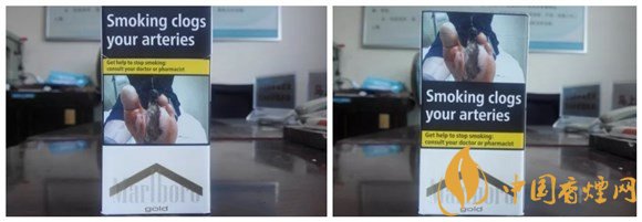 警示圖片的內容,與84S紅或白等相同。從樣式上可以看出,它也是一款新版萬寶路。與84S系列相同的,是因為讓位于警示圖片,黑框警示英文字句,轉而移到煙盒的左右側面。#p#副標題#e#