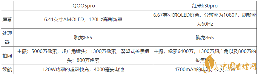 iqoo5pro和紅米k30pro參數對比和綜合性能測評