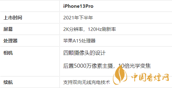 以上是小編整理的有關iPhone13Pro手機參數曝光的最新信息,相信在座的朋友們聽到小編的介紹有所認識,但是小編在這里提醒一句由于手機目前還未發布,具體以官方為準,更多最新最實用的資訊請持續關注香煙網。