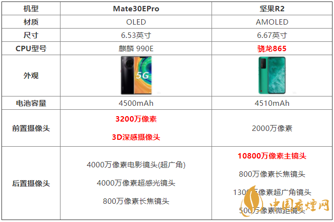 以上就是香煙網小編為大家介紹的Mate30EPro和堅果R2哪款性能好的相關內容了,希望對大家在選擇時有所幫助。了解更多實用手機相關咨詢,請關注香煙網。