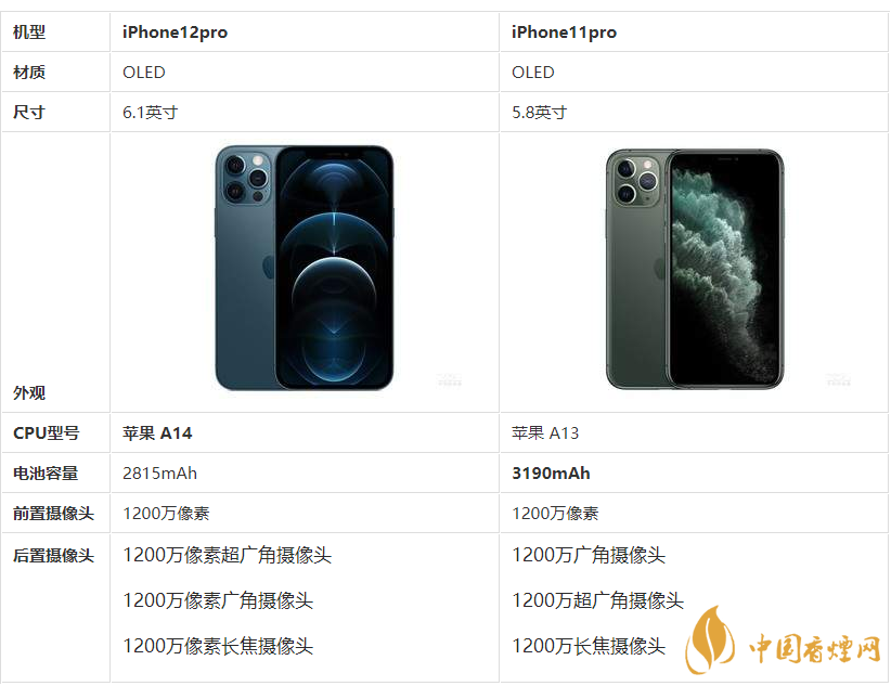 iPhone12pro和iPhone11pro參數(shù)配置對比
