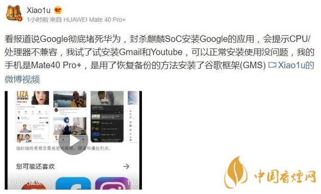 為了驗證這個消息的真實性,數碼大V Xiao1u驗證了自己的華為Mate40 Pro手機,嘗試安裝Gmail、Youtube都沒問題。即便是國外網友爆料中的谷歌地圖應用,Mate40 Pro安裝也沒問題,他表示這可能是下載的APK有問題。