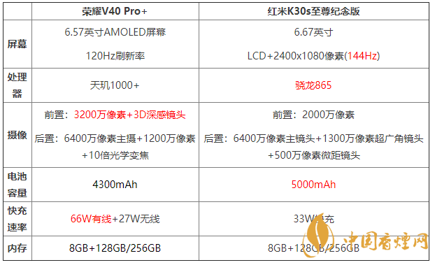 紅米k30s至尊紀念版這款手機可是有著非常強大的性能,驍龍865的處理器配上超大的電池容量和電競屏般的刷新率絕對是用戶入手的最佳選擇。以上就是香煙網(wǎng)小編為大家介紹的榮耀v40pro+和紅米K30s至尊紀念版參數(shù)對比的相關內容了,希望對大家在選擇時有所幫助。了解更多實用手機相關咨詢,請關注香煙網(wǎng)。