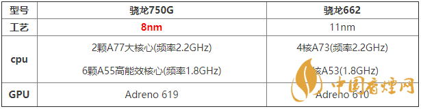 驍龍750G采用的8納米制造工藝,而驍龍662采用的是11納米的制造工藝,很明顯的驍龍750G更好。