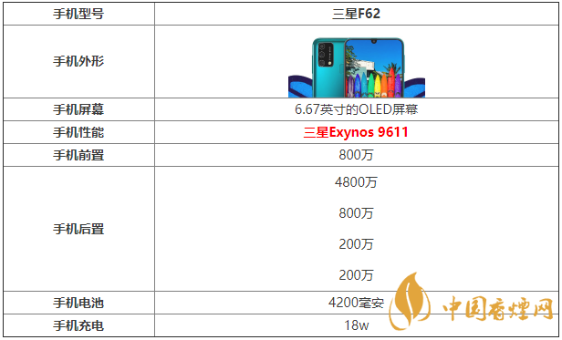 三星F62手機怎么樣?三星F62是三星最近新推出的一款手機,那么這款手機的具體參數是什么?搭載什么處理器?性能怎么樣?接下來香煙網小編為大家帶來最新的三星F62參數配置詳情,感興趣的朋友一起來看看吧!