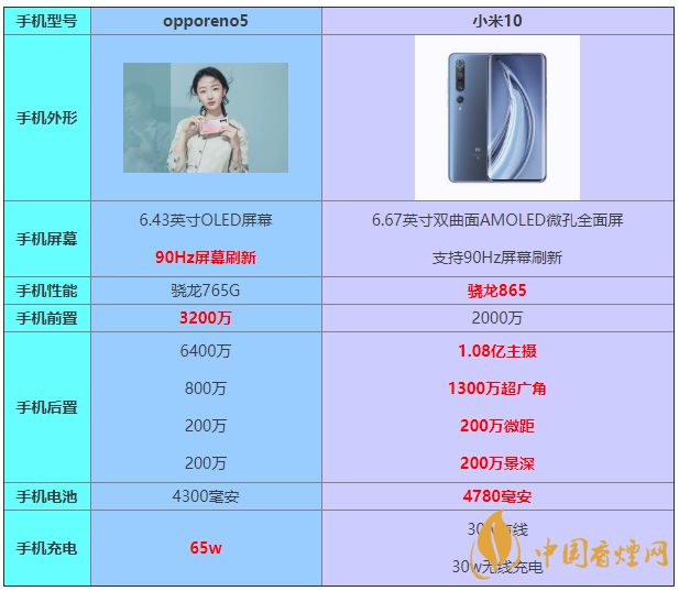 小結:在手機的續航方面是小米10更好,為用戶帶來最多的電池容量,在手機的充電速度方面是opporeno5最優,為用戶帶來65w的充電速度