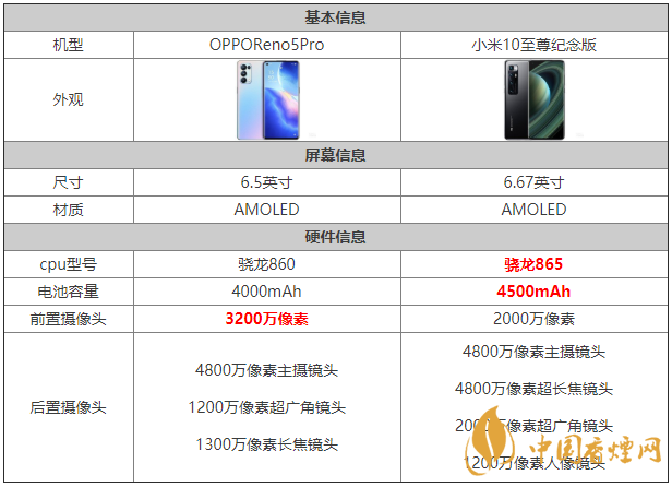 opporeno5pro和小米10至尊紀(jì)念版參數(shù)對(duì)比