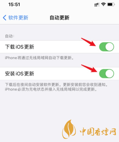 4、將【下載ios更新】和【安裝ios更新】后面的開(kāi)關(guān)關(guān)閉即可。