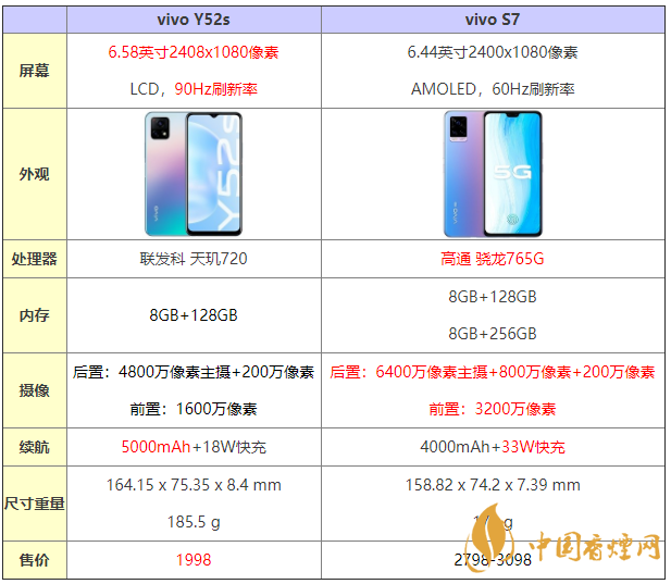 vivoy52s和vivos7手機哪個更好?vivoy52s和vivos7對比,有哪些區別和配置差距,哪款手機更值得入手?接下來香煙網小編就為大家帶來了vivoy52s和s7全面參數配置對比,一起看看哪款更值得入手性價比更高吧!