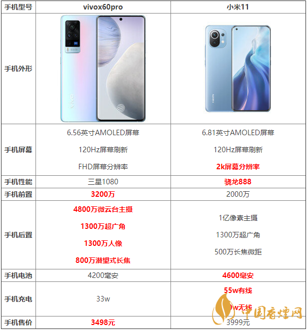 通過上面的介紹,相信大家對vivox60pro和小米11有什么區別以及參數對比都有了一定了解了,希望對大家在選擇時有所幫助。了解更多實用手機相關咨詢,請關注香煙網。