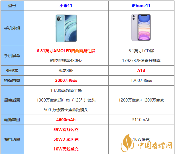 對(duì)于近日新出的小米11手機(jī),相信許多小伙伴對(duì)這款手機(jī)十分關(guān)注,那么對(duì)比iphone11手機(jī)有什么區(qū)別?哪款手機(jī)更好?哪款手機(jī)更值得入手?下面香煙網(wǎng)小編將對(duì)iphone11和小米11參數(shù)對(duì)比進(jìn)行介紹,感興趣的朋友一起來看看吧!
