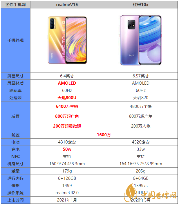 通過上面的介紹,相信大家對realmev15和紅米10x參數對比以及哪款手機更值得入手都有了一定了解了,希望對大家在選擇時有所幫助。了解更多實用手機相關咨詢,請關注香煙網。