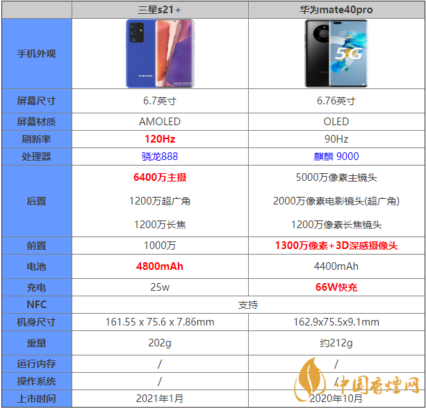 三星s21+和華為mate40pro哪款手機(jī)更好?三星s21+和華為mate40pro兩款非常熱門的旗艦手機(jī),那么小伙伴們要在其中選擇一個(gè)的話,到底是要如何選擇呢?下面香煙網(wǎng)小編將對三星s21+和華為mate40pro參數(shù)對比進(jìn)行介紹,一起來看看吧!