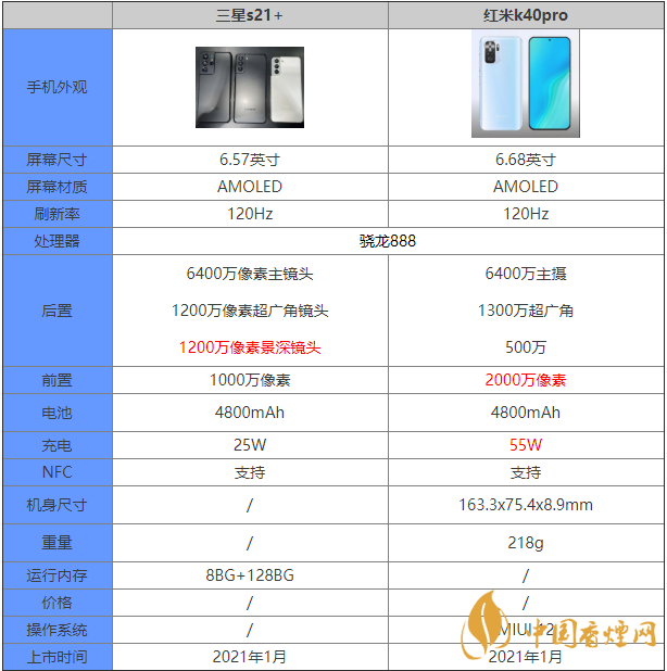 三星s21+和紅米k40pro都是有著相同的處理器,那么在三星s21+和紅米k40pro有什么區別?哪款手機更值得買?接下來香煙網小編將對三星s21+和紅米k40pro參數對比進行介紹,感興趣的朋友一起來看看吧!