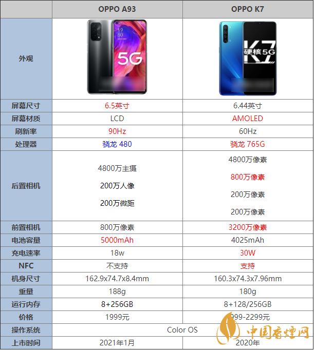 OPPOA93和OPPOK7參數對比 哪款手機更值得入手