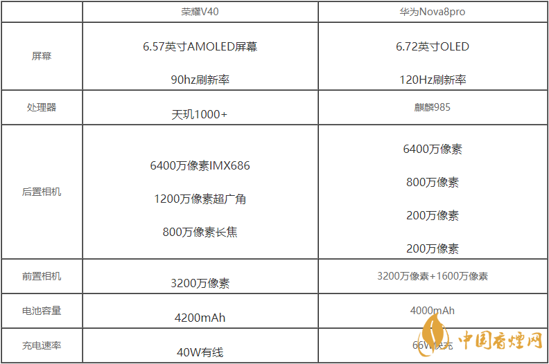 榮耀v40和華為nova8Pro都是中高端5g手機(jī),通過網(wǎng)上曝光的參數(shù)配置來看,二款手機(jī)都是非常不錯(cuò)的手機(jī),那么榮耀v40和華為nova8Pro有什么區(qū)別?哪款手機(jī)更值得入手?下面香煙網(wǎng)小編將對(duì)榮耀v40和華為nova8Pro參數(shù)對(duì)比詳情進(jìn)行介紹,一起來看看吧!