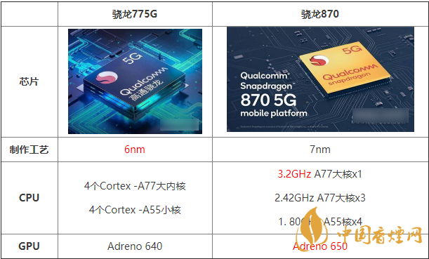 驍龍775G?,采用了6nm的制作工藝,驍龍870?,則是7nm的制作工藝。