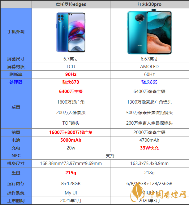 摩托羅拉edges和紅米k30pro參數(shù)對(duì)比 哪款手機(jī)更值得入手