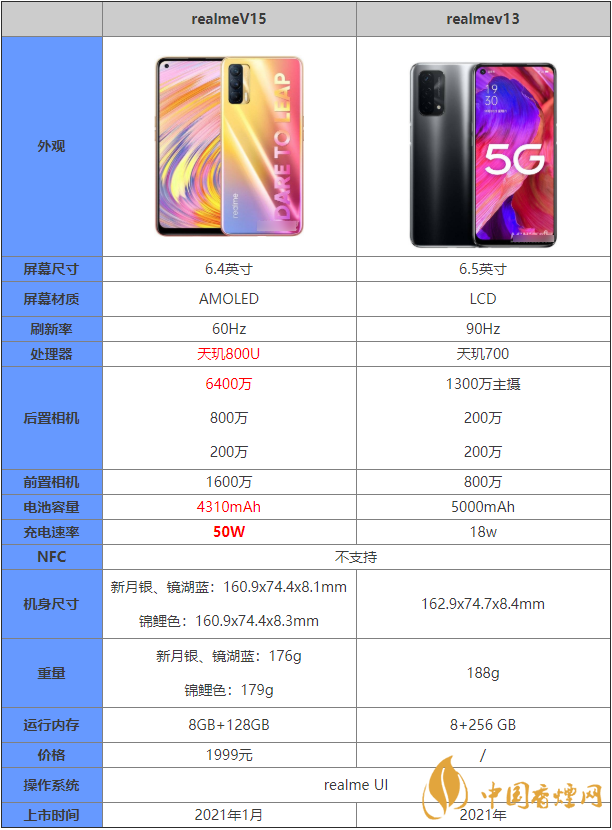 realmev13和realmev15是近期的新款手機(jī),許多小伙伴對(duì)這兩款手機(jī)十分關(guān)注,那么realmev13和realmev15這兩款手機(jī)有什么區(qū)別?哪款更值得入手?下面香煙網(wǎng)小編將對(duì)realmev13和realmev15參數(shù)對(duì)比進(jìn)行介紹一起來看看吧!