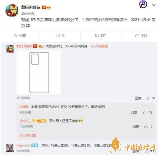 時光來到2021年魅族18系列據說在3月份發布,就在2月3日來自于“數碼閑聊站”的信息顯示魅族18系列將全部采用矩形式多攝像頭設計。看到這個信息魅族18系列的外觀基本上已經可以確定,正面雙曲面屏+打孔,背面常規式的矩陣式設計。換言之這一次魅族18系列再次妥協,跟隨了矩形式多攝像頭的設計,因為從2020年開始這種矩陣式設計就是智能手機領域旗艦多攝的潮流所在。