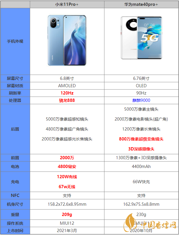 小米11Pro+和華為mate40pro+參數對比-哪款手機更值得入手