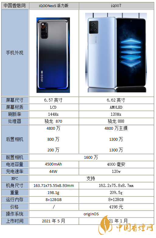以上就是小編收集到的iQOONeo5活力版和iQOO7哪個更好-性能參數對比分析的相關內容,以上內容均來源于網絡,僅供參考,一切以實際為準,更多最新數碼資訊請關注香煙網。