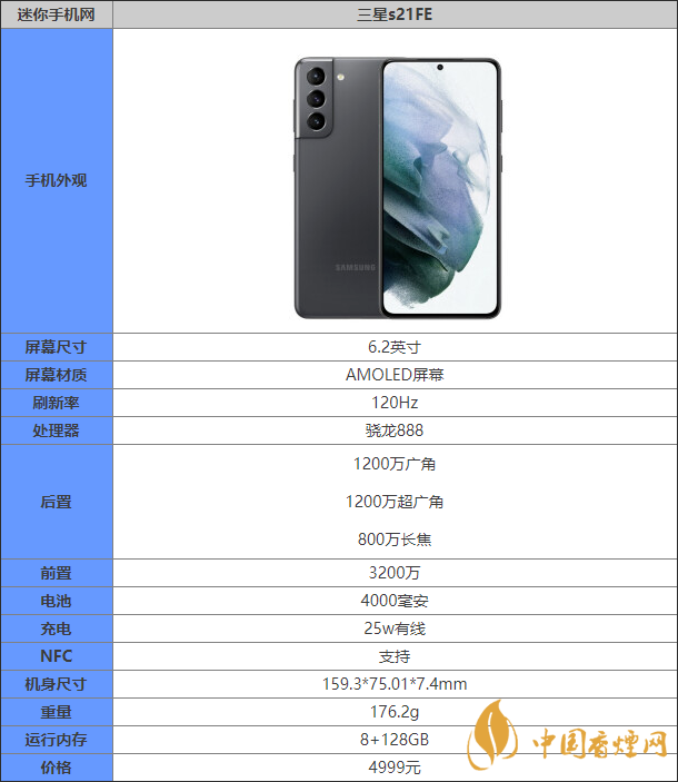 以上就是由香煙網小編為大家帶來的有關三星S21 FE參數配置的相關消息,資料來源于網絡,如需了解更多詳情,請持續關注香煙網,小編將會為大家帶來更多相關資訊。