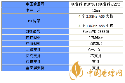 Helio P22支持雙卡雙待和全網通基帶,還有802.11ac Wi-Fi,藍牙5.0,GPS和GLONASS。