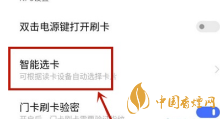3、在設置頁面點擊智能選卡。