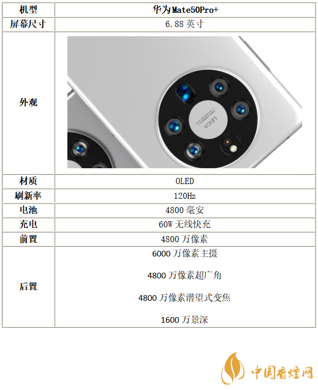 以上就是小編收集到的華為mate50Pro+參數配置詳情-華為mate50Pro+手機怎么樣的相關內容,以上內容均來源于網絡,僅供參考,一切以實際為準,更多最新數碼資訊請關注香煙網。