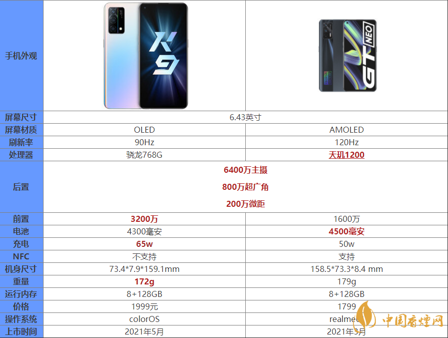 oppok9和真我gtneo哪個(gè)好-oppok9和真我gtneo參數(shù)配置詳情