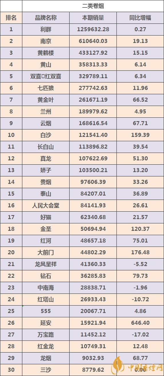二、二類煙卷煙品牌TOP30強數據信息
