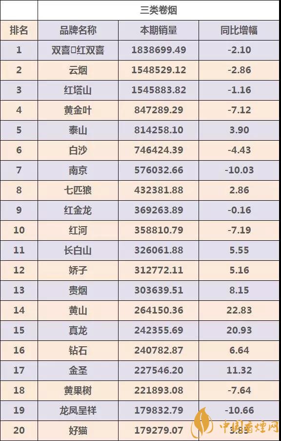 三、三類煙卷煙品牌TOP20強數據信息