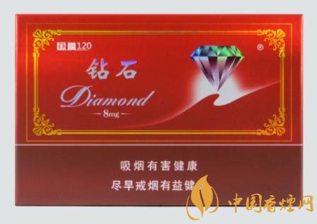 俗名又叫做國嘴120。這款鉆石包裝喜慶之中不失簡約典雅,據說這款好幾年前就是全開包裝。煙嘴特長,味道清淡,香氣一般,感覺中規中矩,但比荷花好些。當時拿到一看就感覺煙嘴很長,和煙卷幾乎是一比一。口感還不錯,和中華還是有的比。包裝很上檔次,過濾嘴很長,中間是空的,還申請了專利,口感不敢恭維,我買的焦油是8mg的,淡淡的。