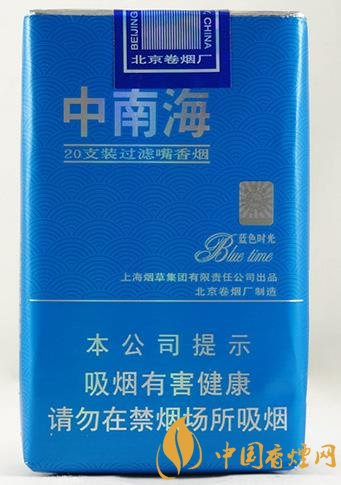 這款煙所含的焦油量為7mg,中南海除了“濃味”和“軟精品”之外,其他產品都是軟盒包裝的。估計是因為濃味售價不高、軟精品產量有限,北京卷煙廠軟包生產線的潛力沒有被完全發揮出來,所以這包藍色時光的開發才被提上日程的吧? 通體純藍、帶波浪底紋的煙盒很是清爽。