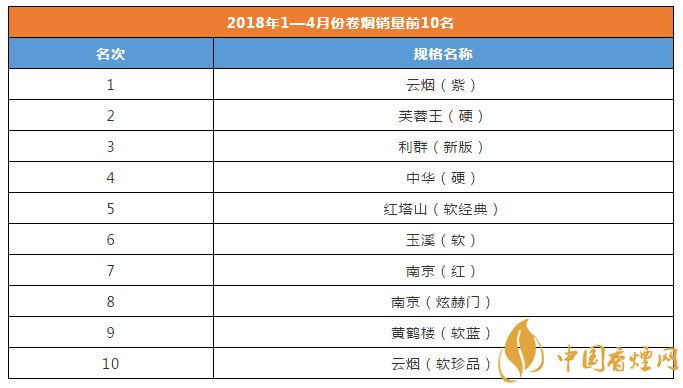 2018年1—4月份卷煙銷(xiāo)量前10名