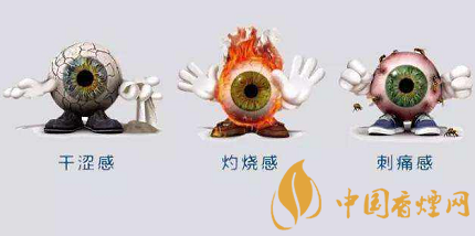 煙草中主要的有害物質是醛類、氮化物、烯烴類;尼古丁類;胺類、氰化物和重金屬;苯丙芘、砷、鎘、甲基肼、氨基酚、其他放射性物質;酚類化合物和甲醛等。這些物質都會對眼睛造成一定的損害,常見的情況有以下幾種: