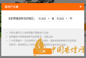 若新用戶則需注冊,選擇所在地區(qū)后點(diǎn)擊“注冊”