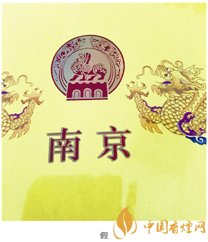 真煙條盒正面的“雙龍”“南京”等圖案立體感強,印刷清晰且有力量感,摸上去凹凸感明顯;假煙的“雙龍”“南京”等圖案印刷不清晰,浮于表面,無凹凸感。