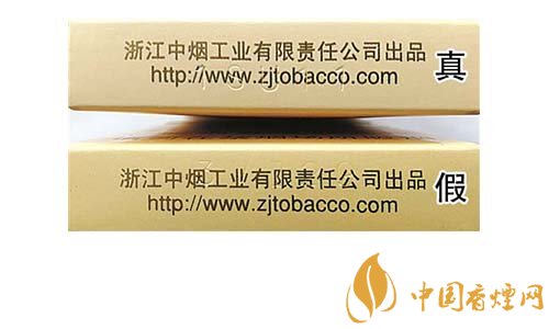 真煙鋼印為機器動態打印,整體鋼印較深、間距不等,其位置與企業網址重疊;假煙鋼印一般為手工靜態打印,鋼印較淺,位置與文字重疊。