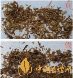 真品卷煙煙絲呈金黃色,煙絲彈性好,具有特殊氣味。假冒偽劣產品煙絲多為褐黃色,煙絲含末量大,且添加大量化學香料,味道刺鼻,存在明顯差異。