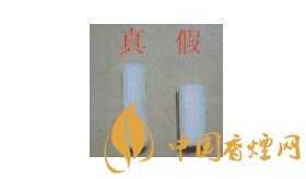 真品卷煙的拉帶設計在煙包中部,開啟口在煙包側面,平頭圓角;假冒偽劣產品拉線頭依然在煙包上側。