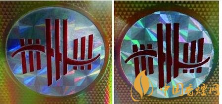 真品小盒正面商標LOGO采用凹凸一次成型技術,商標圖案套色定位準確無誤,成像效果層次分明,無脫漆掉色;假煙多采用高倍掃描儀仿印,印刷工藝粗糙,套色不準,邊緣有明顯脫漆掉色,與真品印刷工藝存在明顯差異。